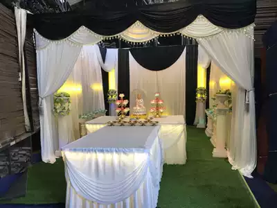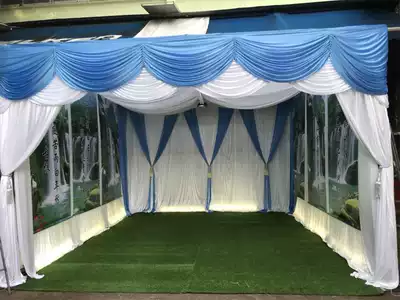 The mourning hall is decorated with a full set of white things. The background cloth shed funeral supplies black and white cloth funeral home gauze cloth.