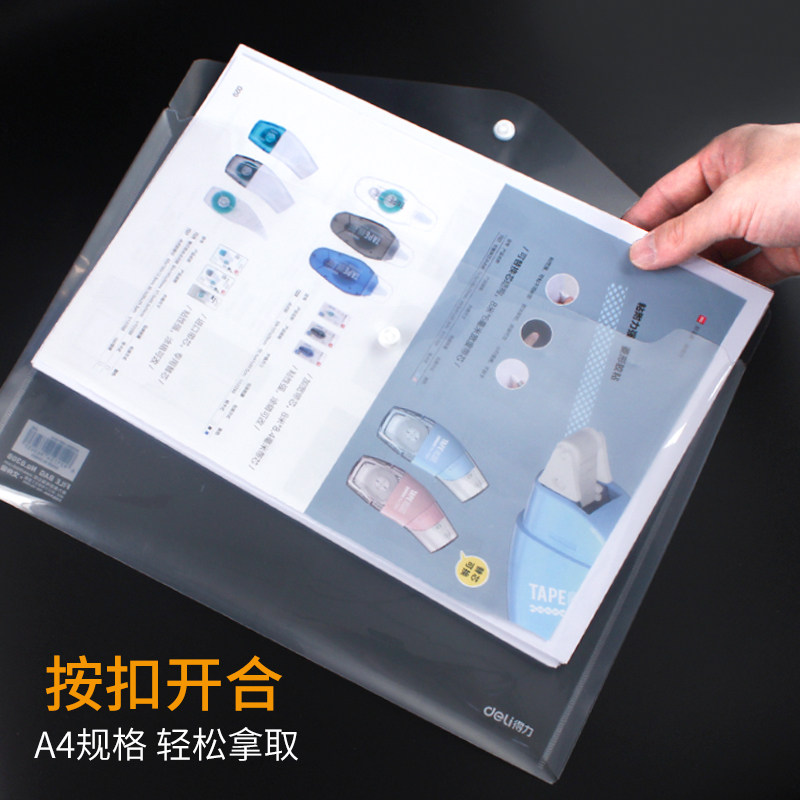 Deli A4 File Bag Transparent Button Info Bag Waterproof Plastic File Bag Snap Files Archive Organizer Little Fresh Student Paper Exam Stationery Bag Business Ticket Briefcase Clip