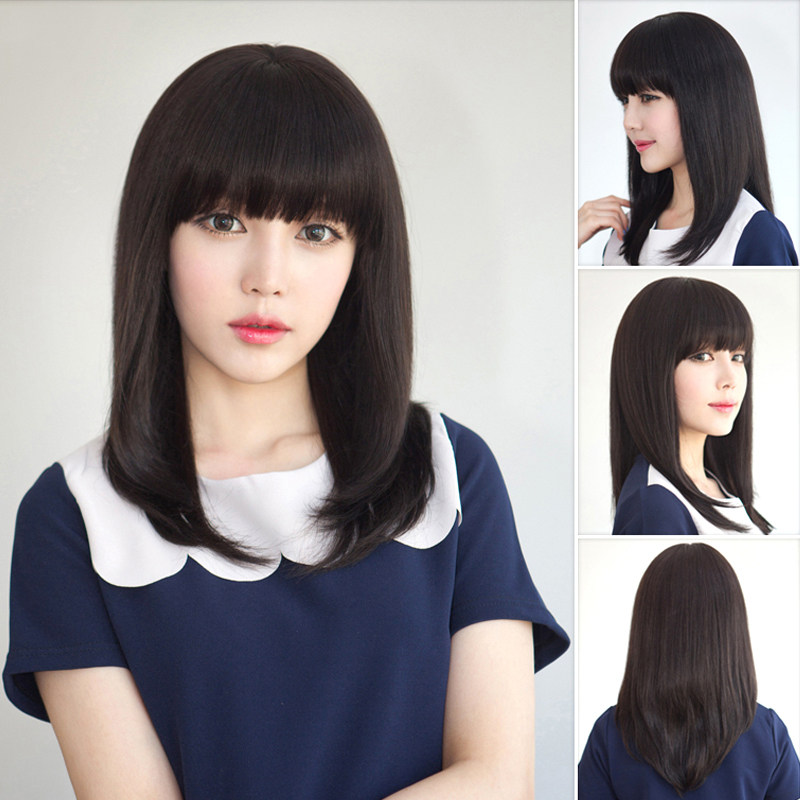 100%True Natural Black(Qi bangs) - 40cm100%True Dark brown(Qi bangs) - 40cm100%True Natural black(Oblique bangs)- 40cm