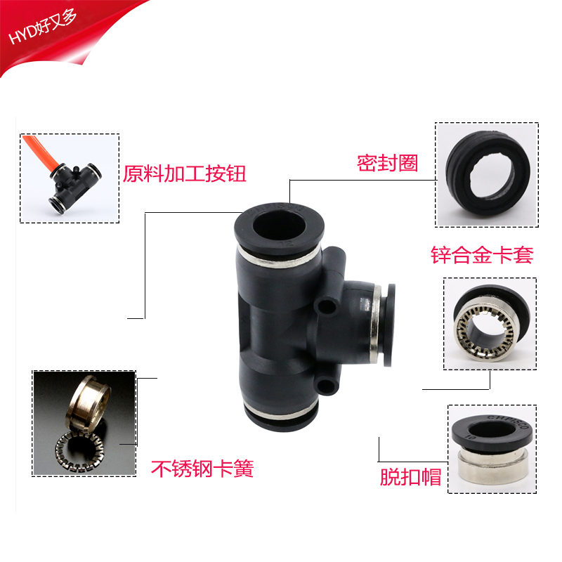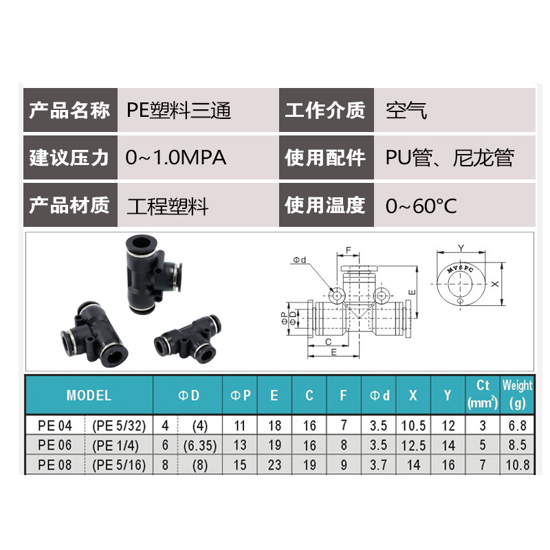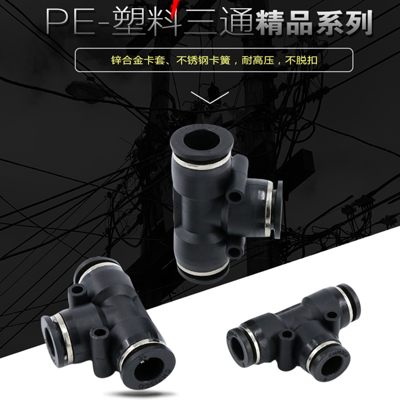 Black PE-4 trilateral plug 4mm trachea black PE-6 trilateral plug 6mm trachea black PE-8 three sides plug 8mm trachea black PE-10 trilateral plug 10mm trachea black PE-12