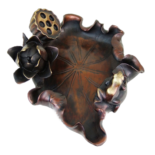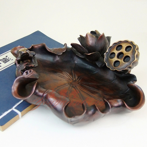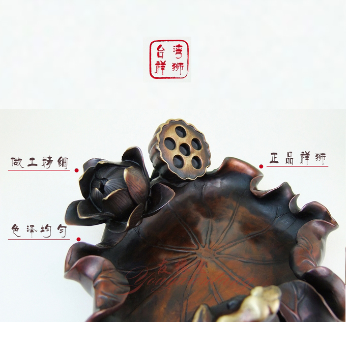Taiwan Xiang Lion Pure Bronze Lotus Leaf Tobacco Ashtray New Chinese Style Decorative desktop Merchants Town Residence Living room Office creative pendulum