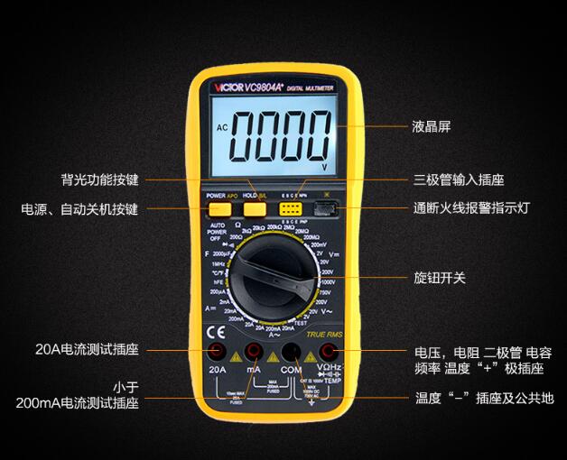 Victory VC9804A Digital multimeter with electric meter with thermometric frequency firing line judgment function number of display multipurpose table