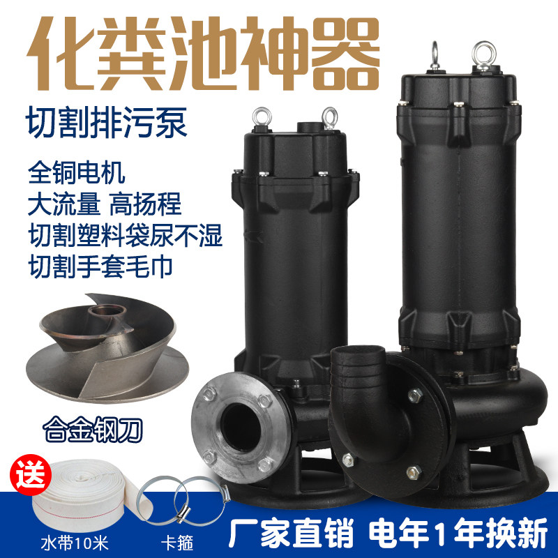 All-copper motor household 220V septic tank cutting pump biogas tank pumping manure sewage pump 380V non-clogging mud pump