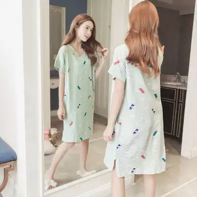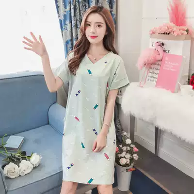 Korean version of nightdress Women summer fresh long-term students sexy can wear sweet and cute loose pajamas women Summer