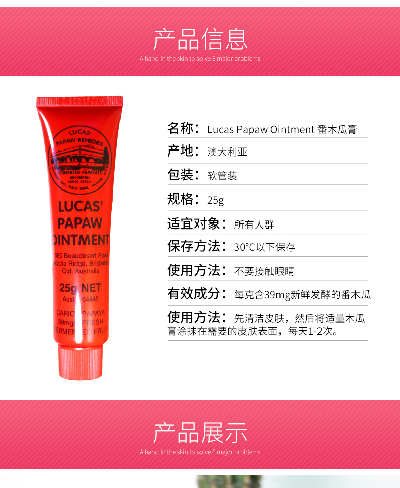 Papaya cream imported from Australia Lucas Papaw papaya cream 25g universal cream moisturizing anti-cracking mosquito papaya cream