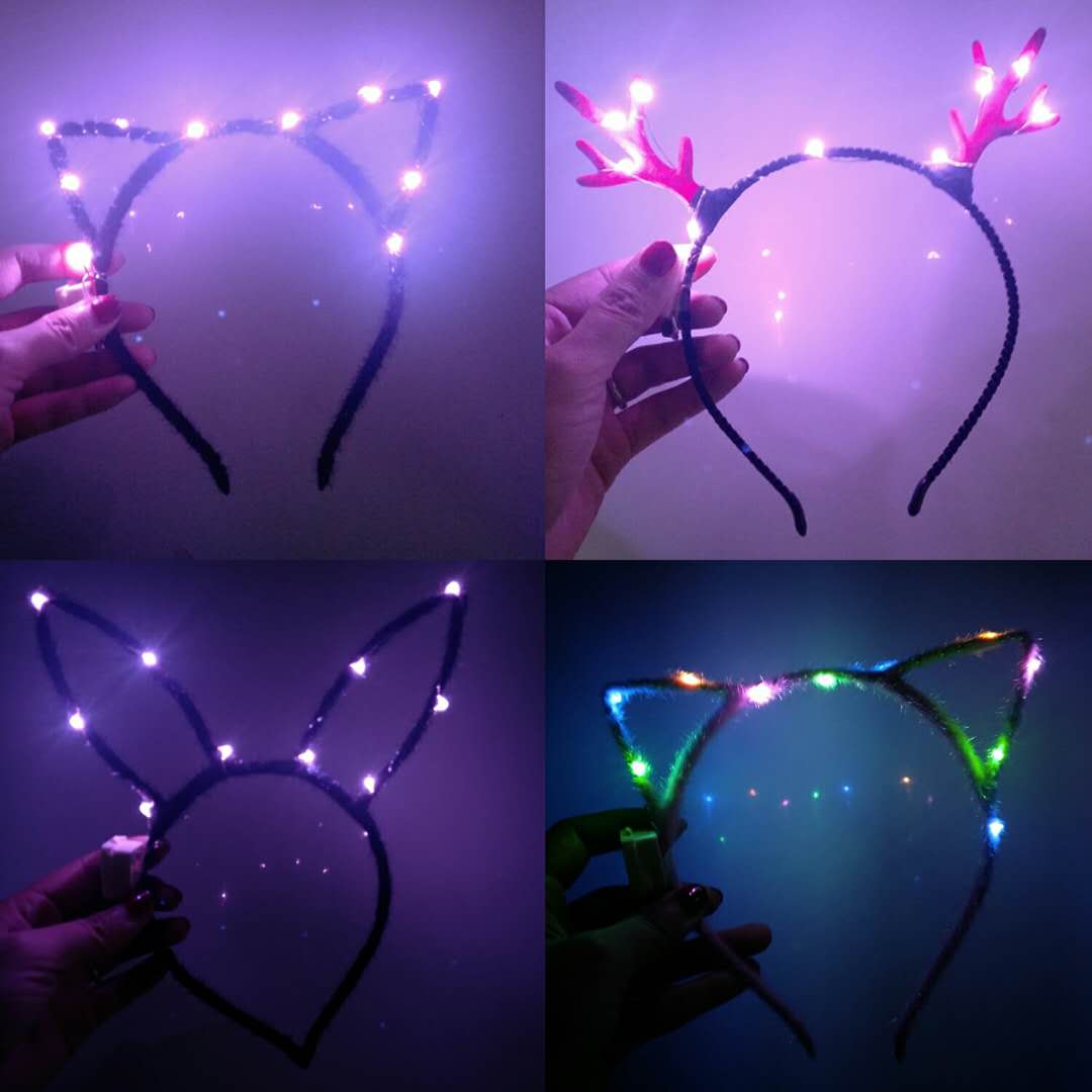 Luminous antler headbands Luminous brown antler headbands Luminous cat ears Dark pink Luminous cat ears Light pink Luminous cat ears Black red antler hairpins A pair of brown antler hairpins A pair of red cat ears Luminous