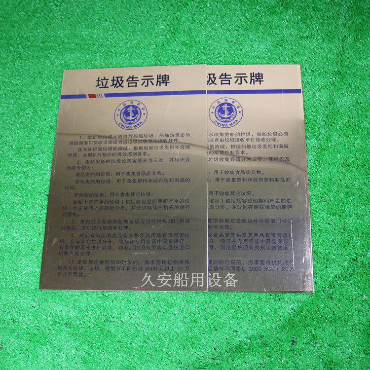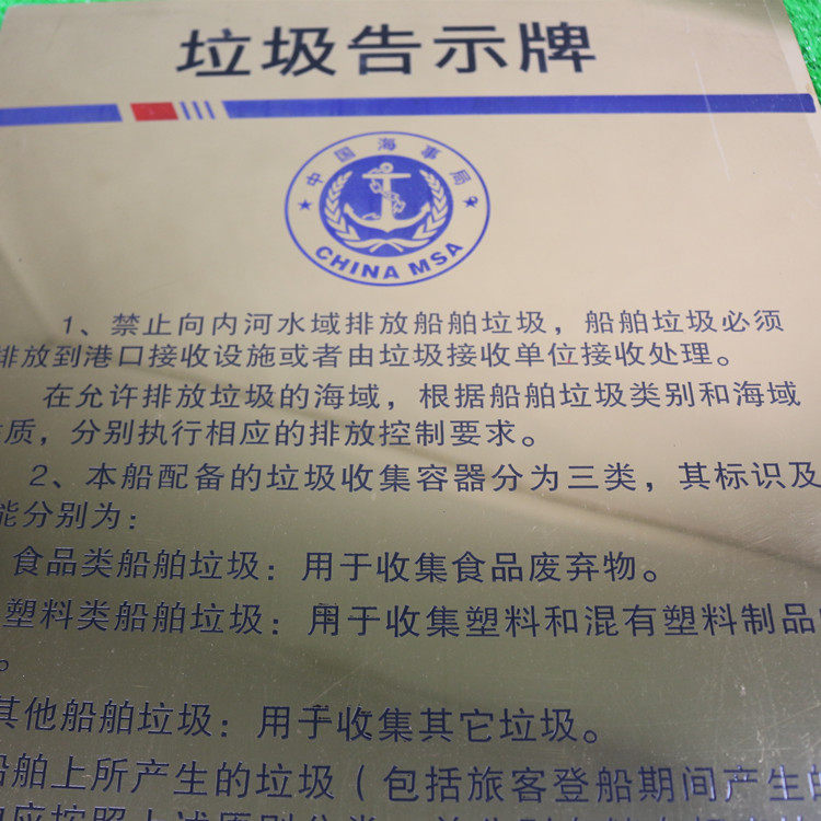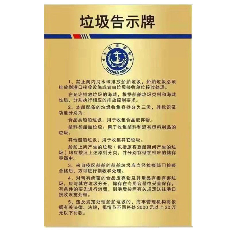 2019 New Edition of Inland Marine Garbage Bulletin Board Warning Titanium Alloy Signs for Coastal Ships