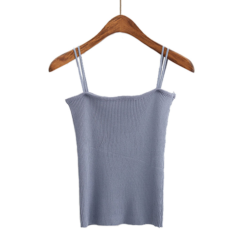 2021 summer Korean version slim inside with suspenders White knitwear small vest women wear short base shirt top