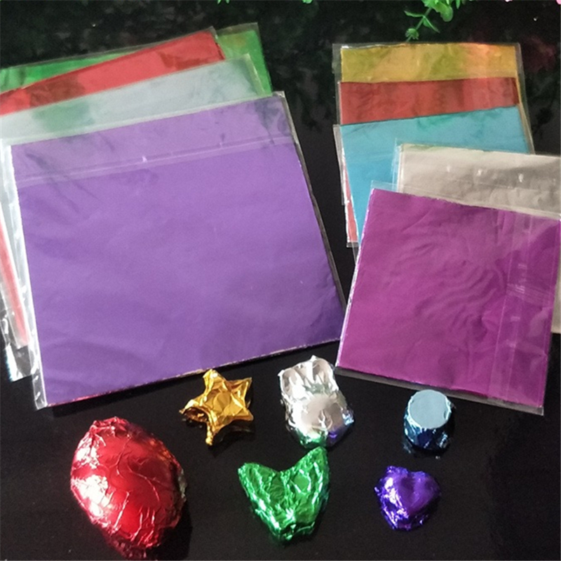 Colored aluminum foil tin paper 10x10 chocolate packaging paper 8x8 lollipod egg packaging 15x15 tin foil paper