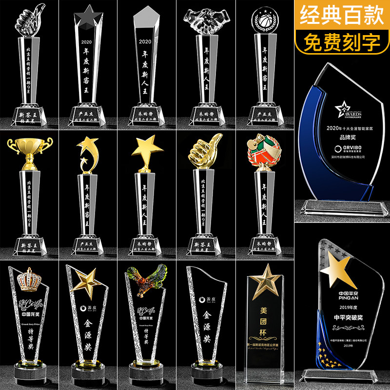 Crystal Trophy Creative Develop the thumb Pentagon Authorized Card Staff Sports Games Prize Making