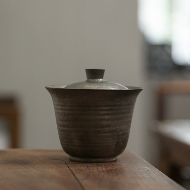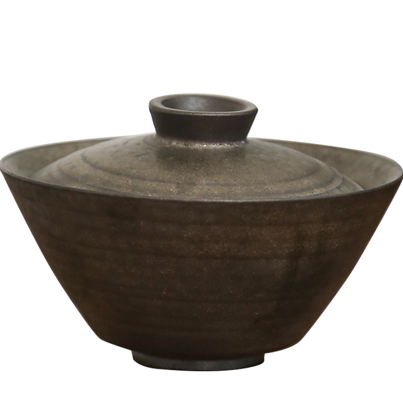 Nine tea house raw ore iron glaze cover bowl tea cup Japanese metal glaze ceramic kung fu tea set tea bowl large