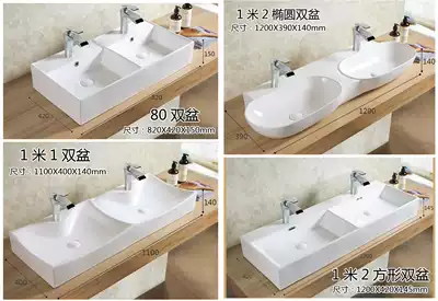 Ceramic double-slot washbasin washbasin table basin Large size square washbasin double-hole basin Ultra-thin simple Nordic style