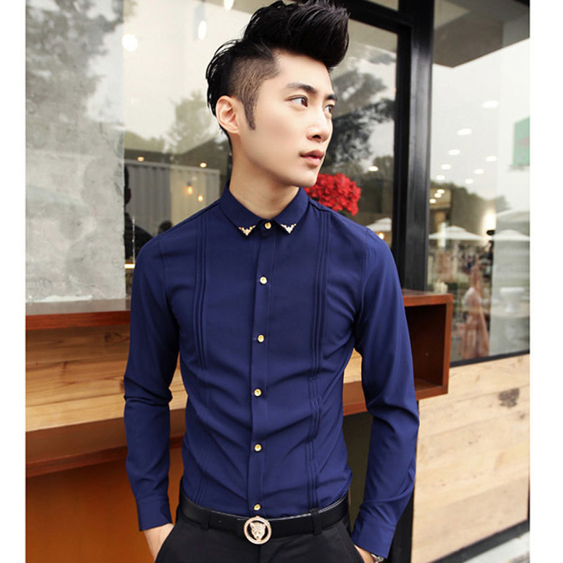 Korean version small size tight clothes trendy men small collar groom wine red shirt slim host long-sleeved shirt men's clothing