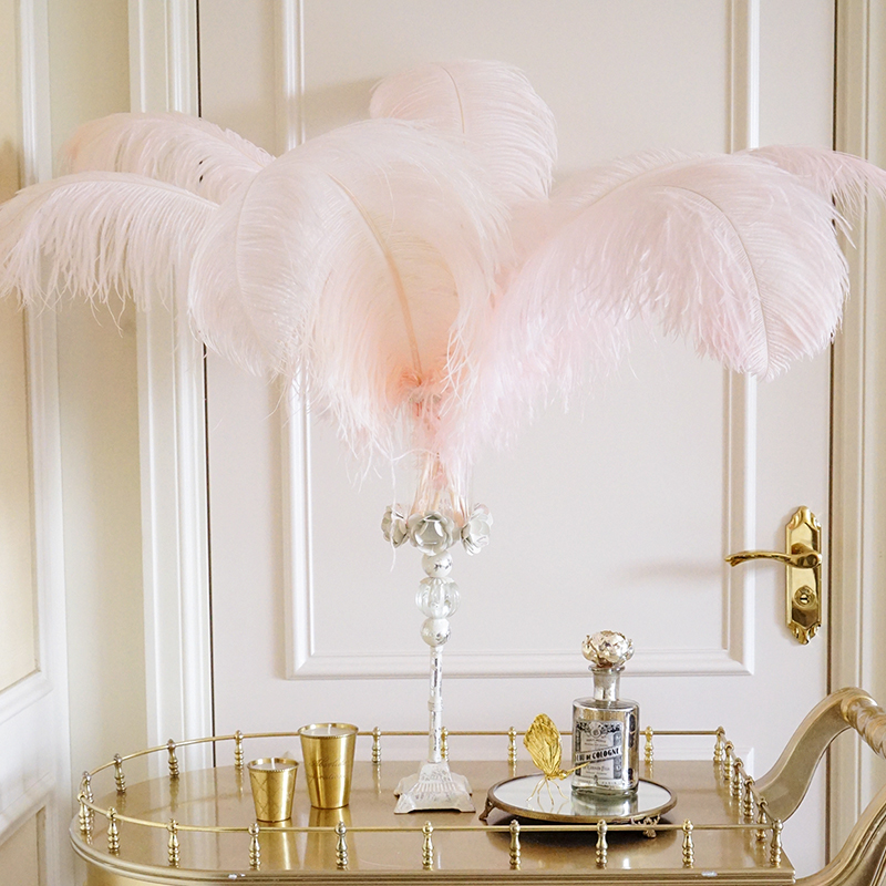 Candle holder old vintage brass natural ostrich feathers DIY Golden White ins style Nordic ornaments