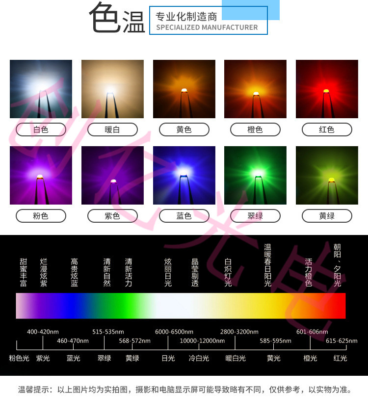 Red Light Blue Light Green Light (green light of traffic light) General green light (a little yellow) yellow light orange light pink light purple light cold white light warm white light ice blue light violet light