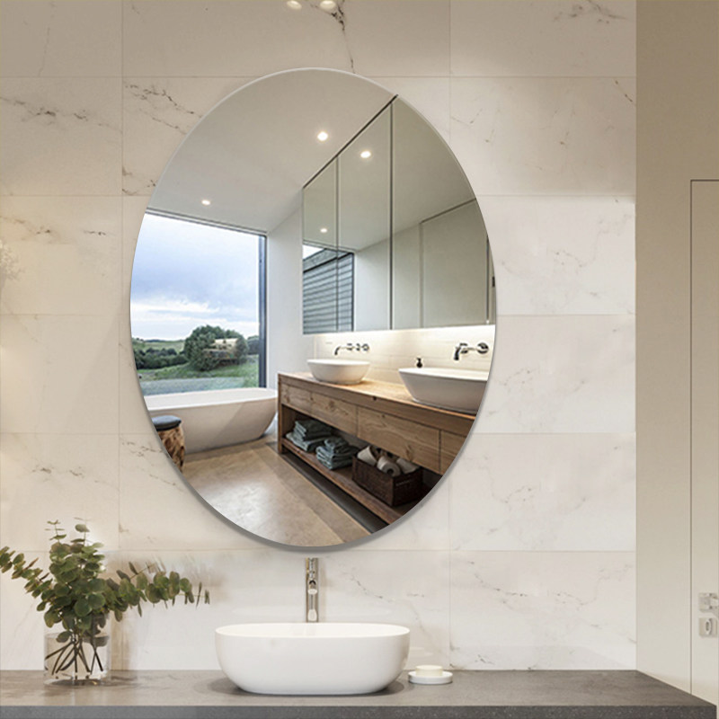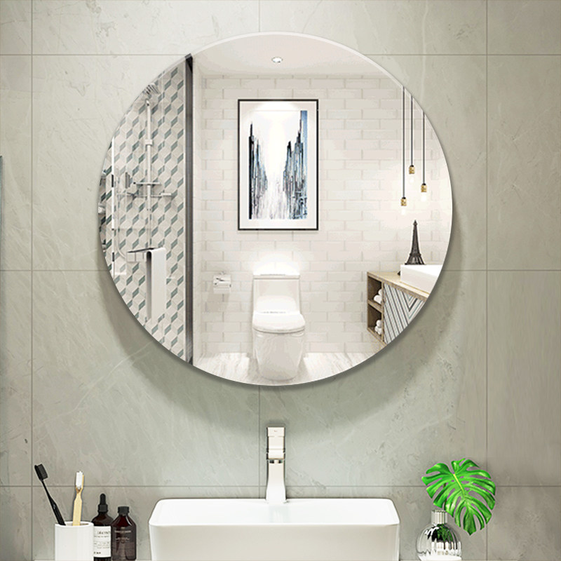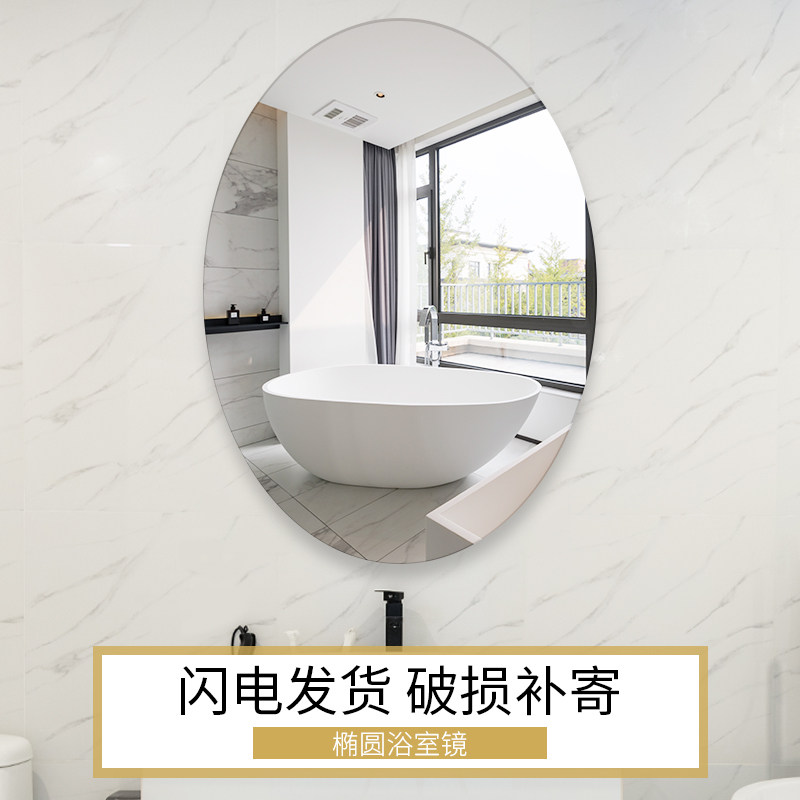Wall-mounted round mirror oval bathroom mirror toilet free punch toilet toilet wall sticker vanity mirror self-adhesive mirror