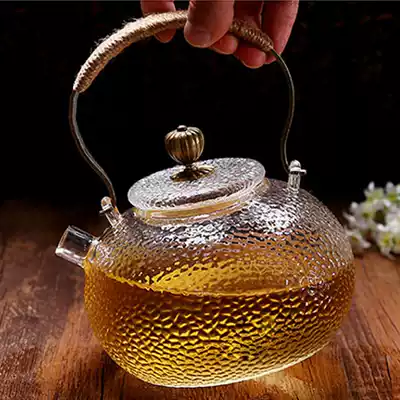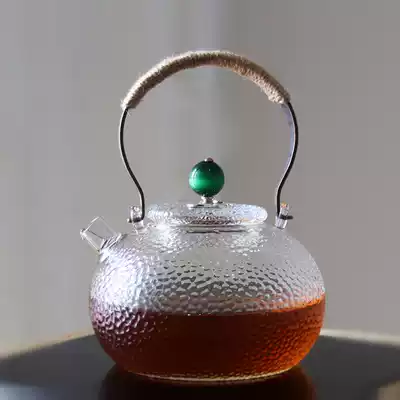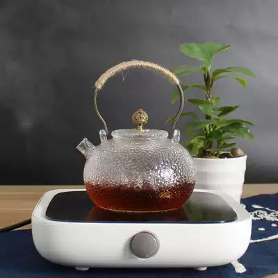 Japanese hammer mesh glass pot black crystal furnace special tea boiler heat-resistant transparent kettle pure copper pot lifting beam pot