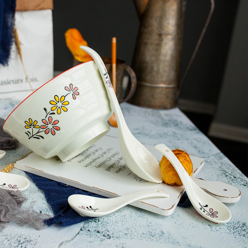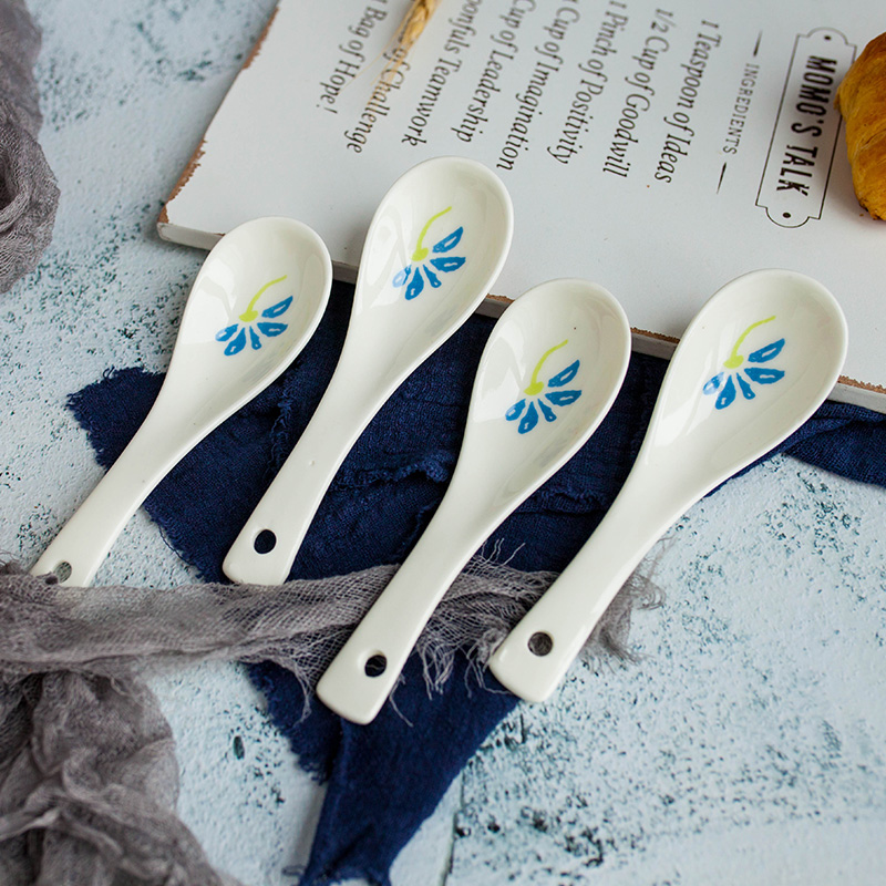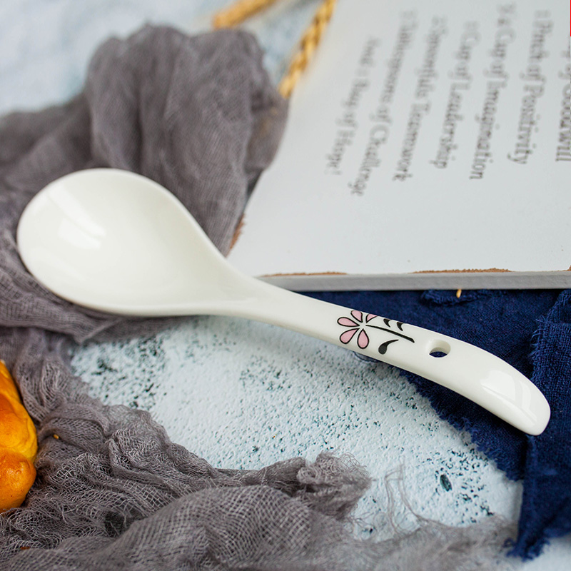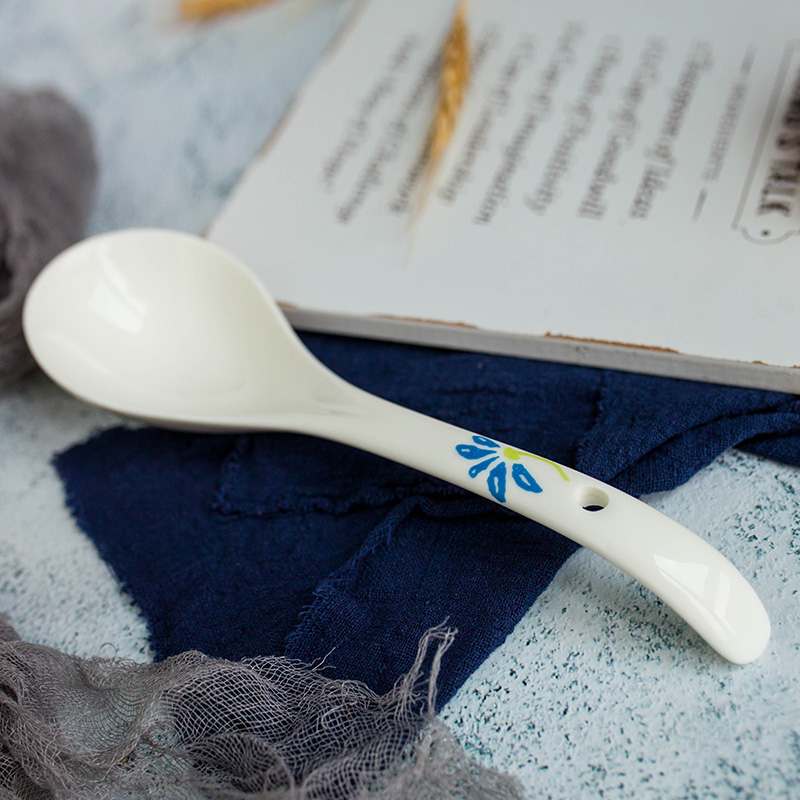 Ceramic spoon household small spoon rice spoon drink soup spoon long handle large spoon spoon spoon microwave tableware
