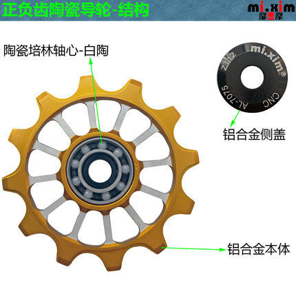 mi.xim mountain bike folding road bike rear dial guide wheel ceramic bearing Bearings Bearings 12T positive and negative tooth guide wheels