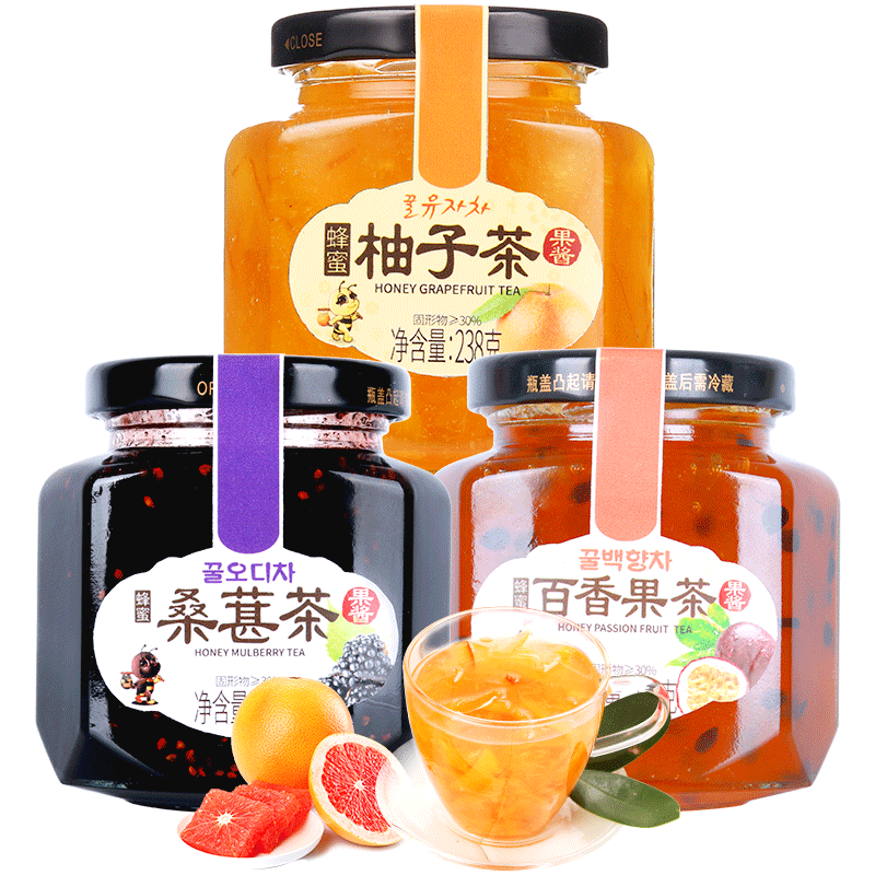 (Send steel spoon) Huasheng honey grapefruit tea sauce passion fruit tea mulberry 238g*3 bottles of fruit tea drink jam