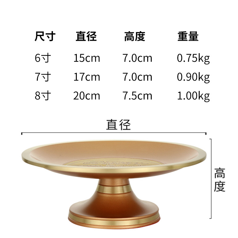 Jinyuan for Buddha supplies fruit plate God of Wealth for plate pure copper tribute fruit plate dedicated to fruit plate Buddha front fruit plate household