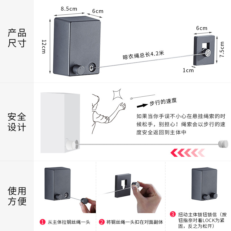 Simple White clothesline-upgrade (hole-free and perforated installation) 4 2m elegant silver clothesline-upgrade (Punch-free perforated installation) 4 2m classic black clothesline-upgrade model