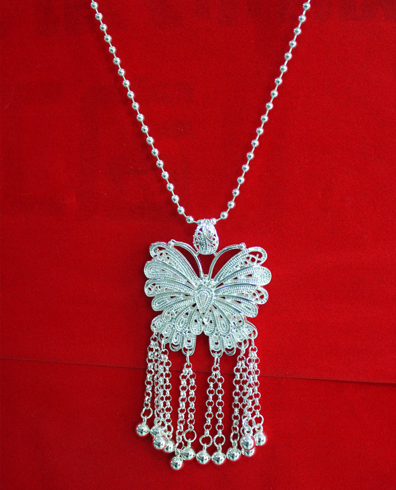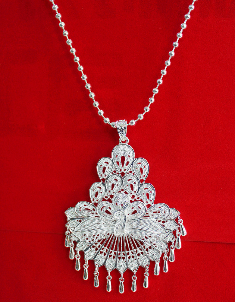 Round bead seedling silver necklace Fashion sweater chain long version necklace Personality wild four seasons hanging women's accessories
