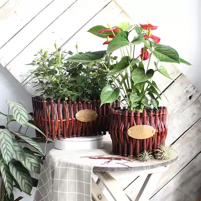European-style pastoral flower basket Hand-woven flower arrangement flower pot Green plant pot flower basket fleshy flower pot wooden basin