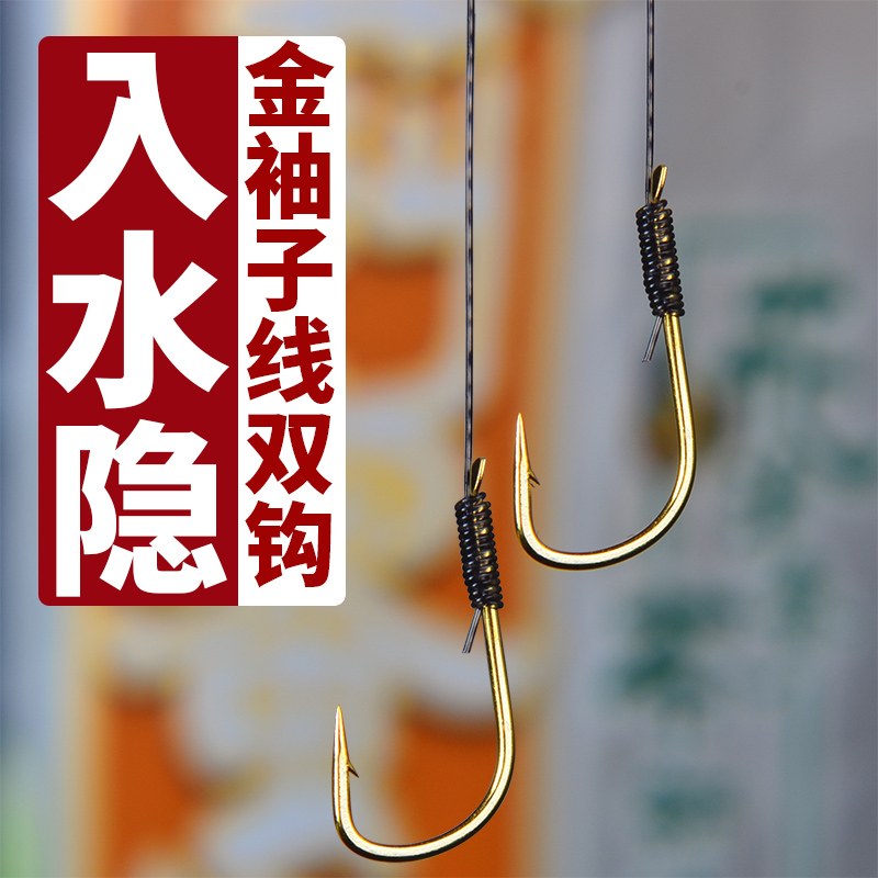 Spotted stealth thread gold sleeve without Thorns finished product double hook set sleeve hook white bar small fish hook imitation winding