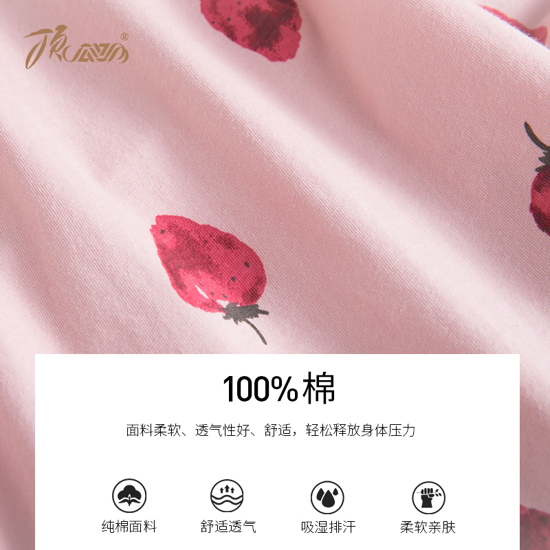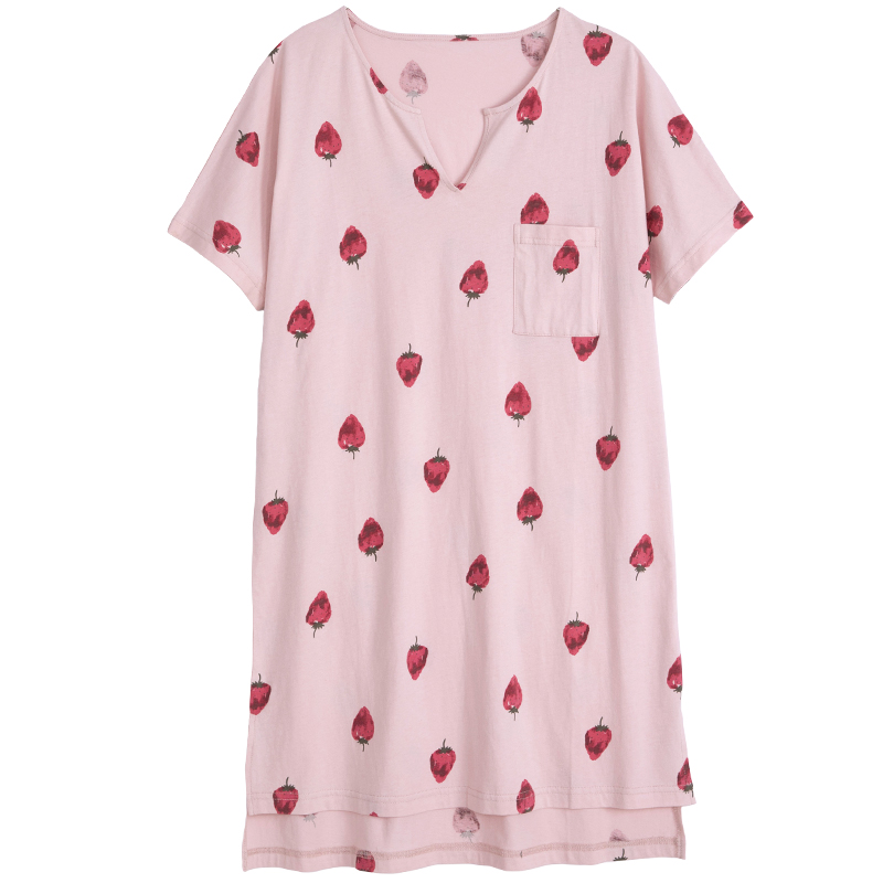 Top Melon Melon Sleeping Skirt Woman Summer Pure Cotton Strawberry Printed Short Sleeve Harnesses Pajamas Full Cotton Home Skirt Easy Toppings