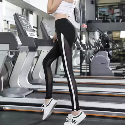Autumn thin striped sweatpants women's outer elastic tights high waist fashion women Korean fitness yoga pants women