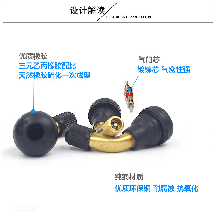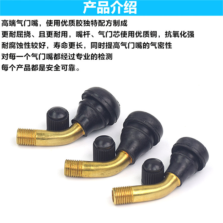 Electric Car Vacuum Tire Gas Nozzle Locomotive Vacuum Tire Gas Door Mouth Bend Mouth Anti-Air Leakage Tire Pure Copper Gas Nozzle