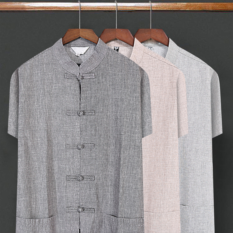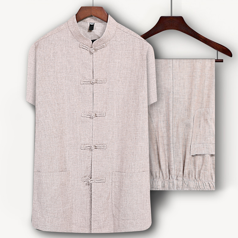 Middle-aged Tang suit men cotton and linen short-sleeved Chinese style grandpa summer linen dad short-sleeved suit old man clothes