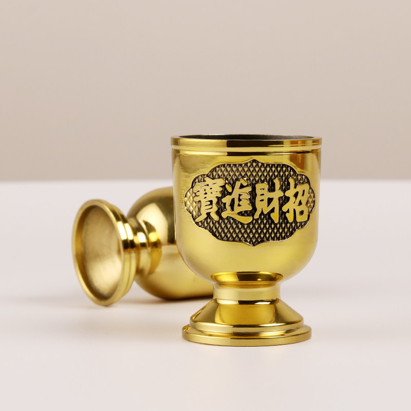 Light ingot Lucky copper wine glass Small water supply cup Brass for the Buddha God of wealth Prayer cup for the Buddha in front of the God tribute cup