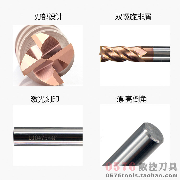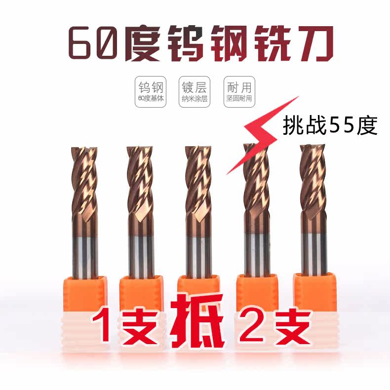 Super hard 55 degrees -60 degrees four 4 edge CNC tungsten steel milling cutter carbide end mill coating lengthened CNC tool