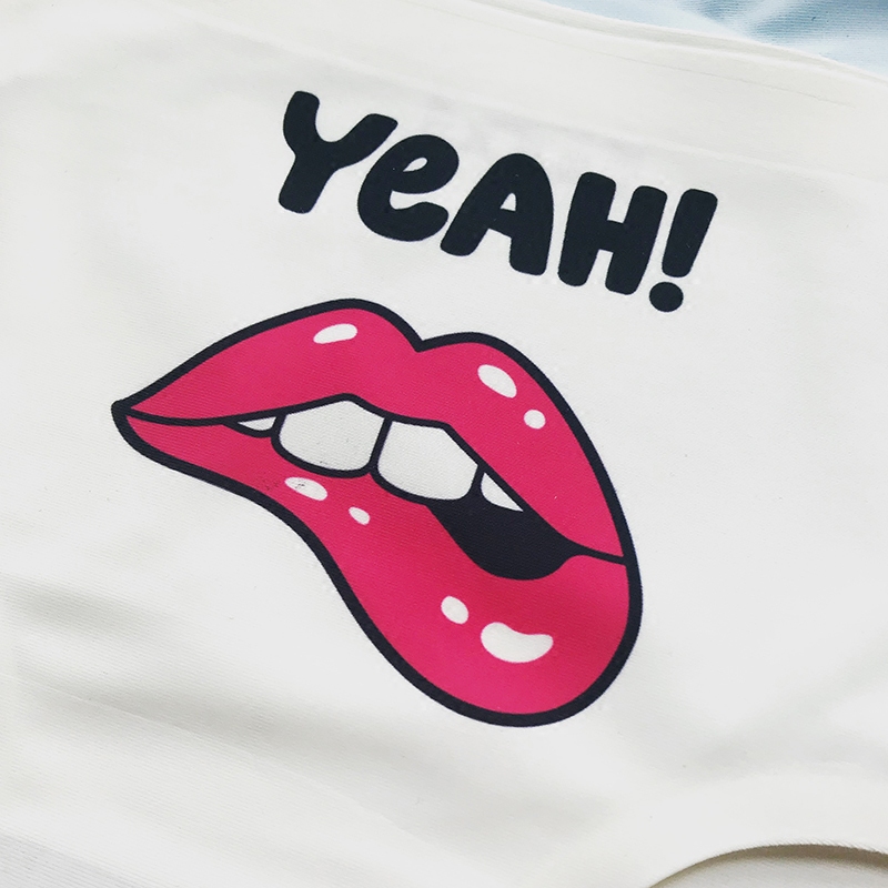 Sexy lips printed ice wire briefs Women in style No marks Cute Girl Cotton Crotch Summer Breathable Big Size Underpants