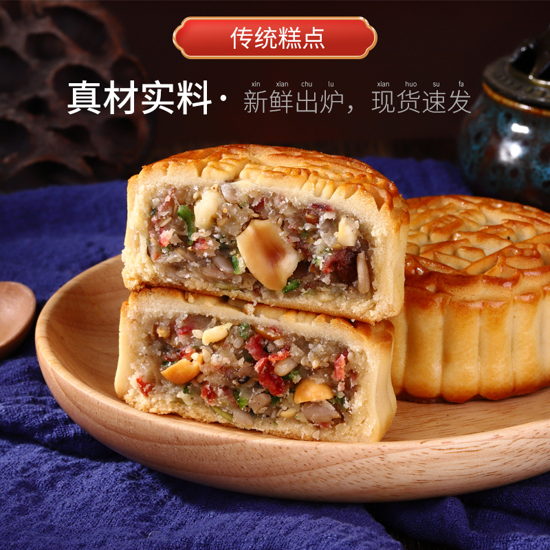 Sun Moon Square Old Wuren Mooncake Traditional Mid-Autumn Handmade old-fashioned mooncake Xylitol Cantonese Black sesame Pepper salt peanuts