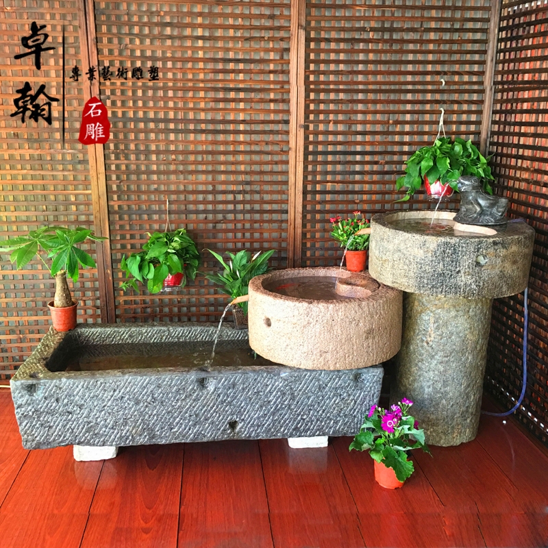 Old Stone Trough Stone Millstone Pig Trough Fish Tank Gold Toad Flow Water View Horse Tank Indoor Bull Tank Fish Yard flower Yard Flower-in-flower Swaying Pieces