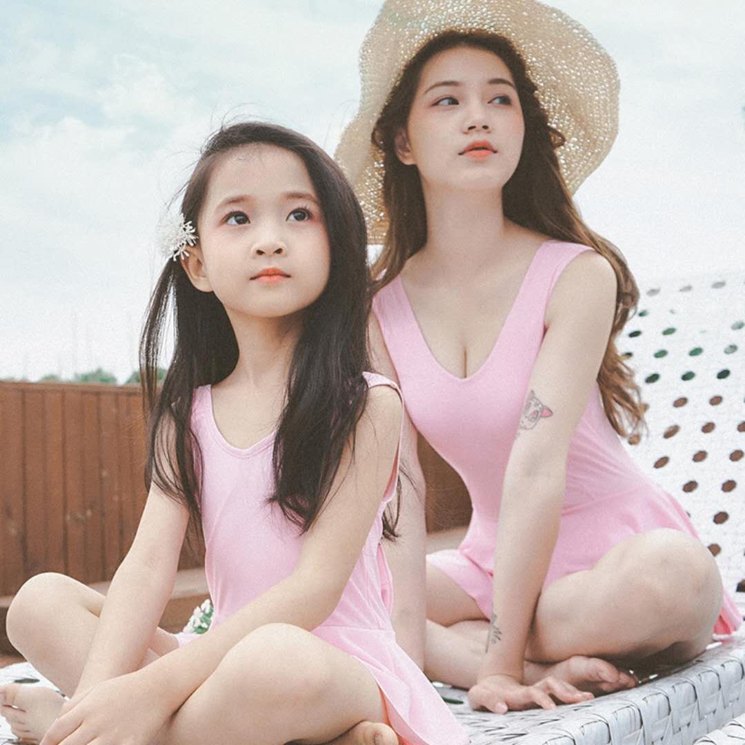 South Korea's new parent-child swimsuit Mother-daughter one-piece skirt bathing hot spring large girl children's swimsuit Girl swimsuit