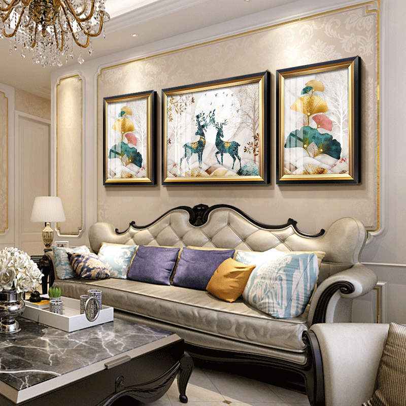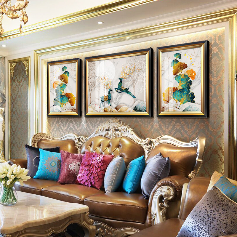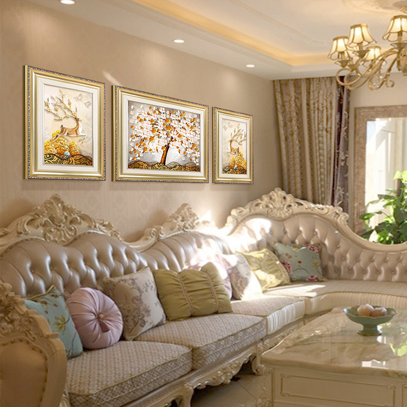 Living Room Decoration Painting Eu Style Sofa Background Wall Hanging Painting Light Extravagant Atmosphere Family Fresco triple light Extravagant Wall Painting