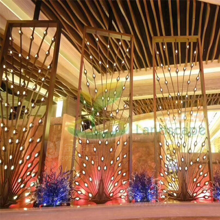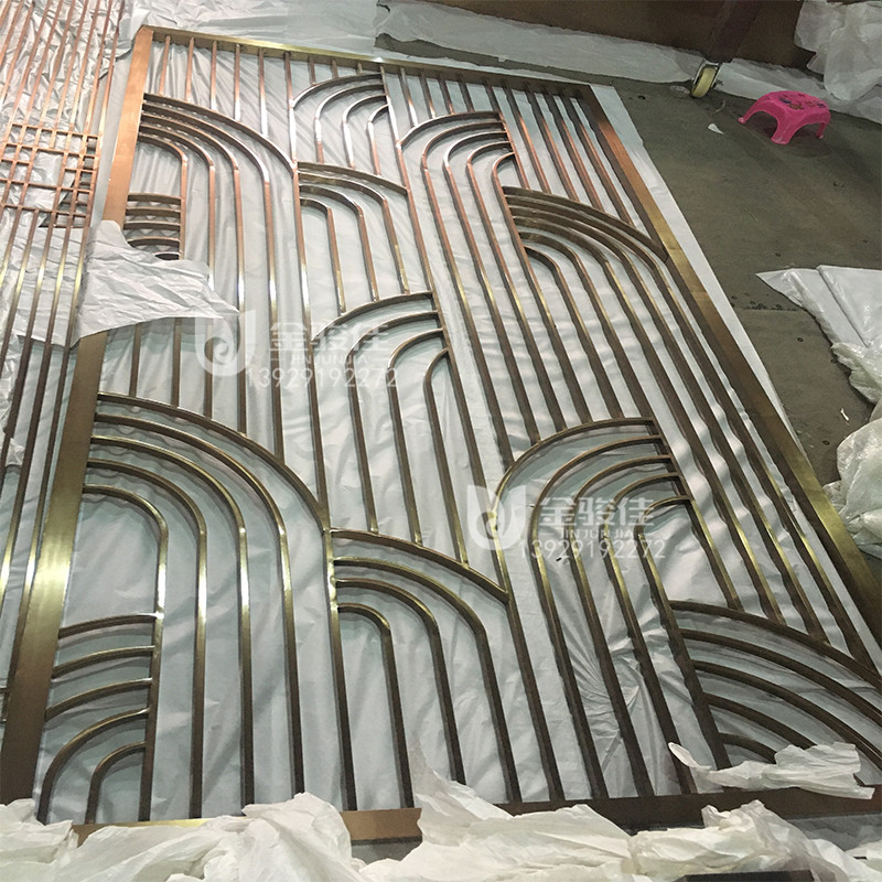Stainless Steel Screen Partition Brief Chinese Flower Lattice Arched curtain Hanging Xuanguan Folding Fold Home Rose Gold Custom