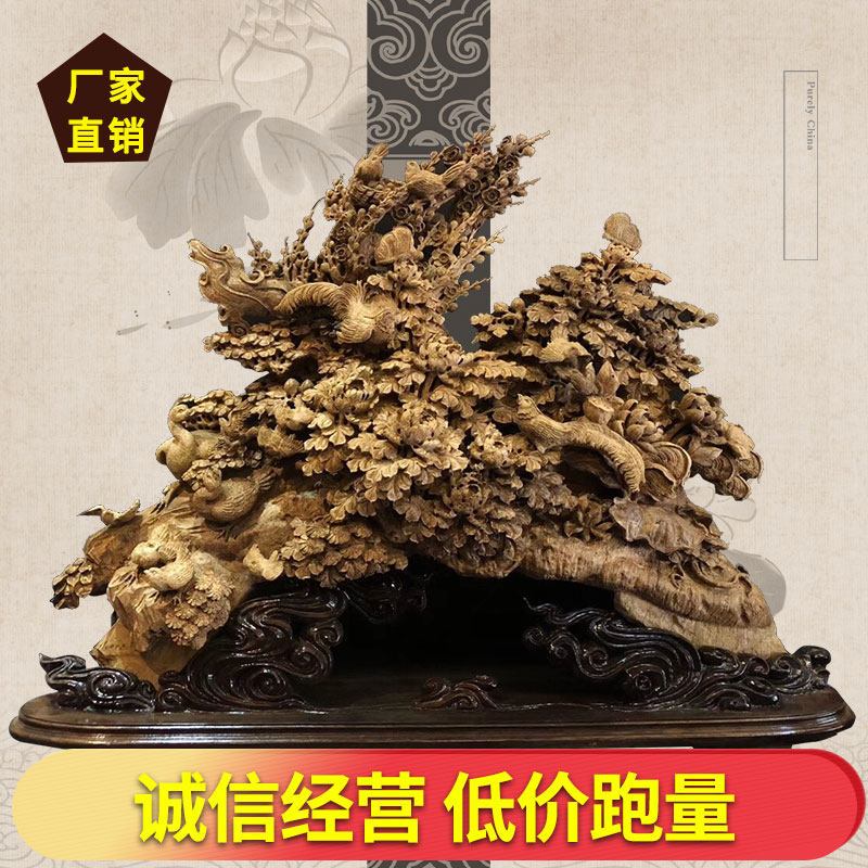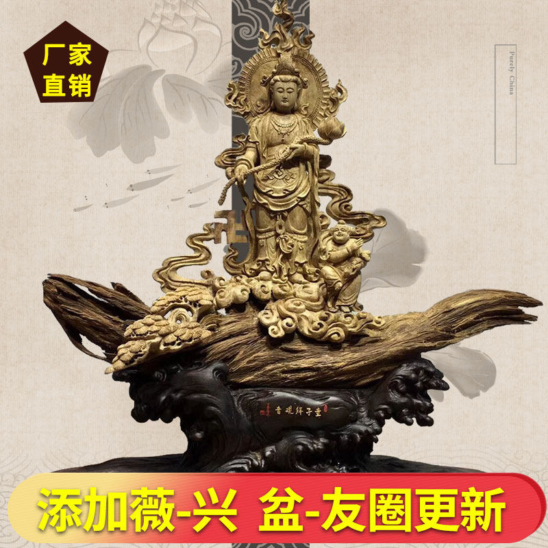 Agarwood Guanyin porch Buddha edge root carving wood carving natural root art ebony gold silk nan small leaf red sandalwood large ornament