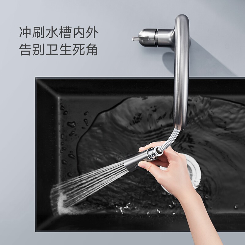 Stainless steel pull-out tap-double-mode water outlet-mirror metal color (605210) stainless steel pull-out tap-double-mode water outlet-gun grey (824001) 304 stainless steel drawback