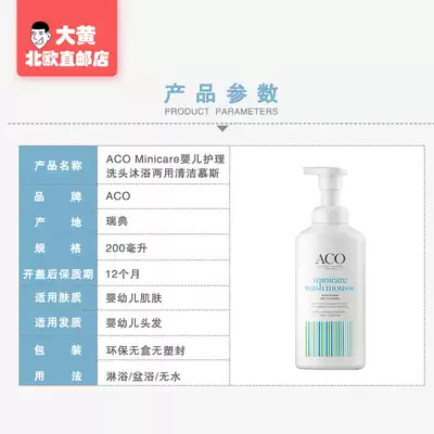Rhubarb Home Direct Mail] Swedish ACO minicare Baby Washing and Bath Cleaning Mousse 200ml