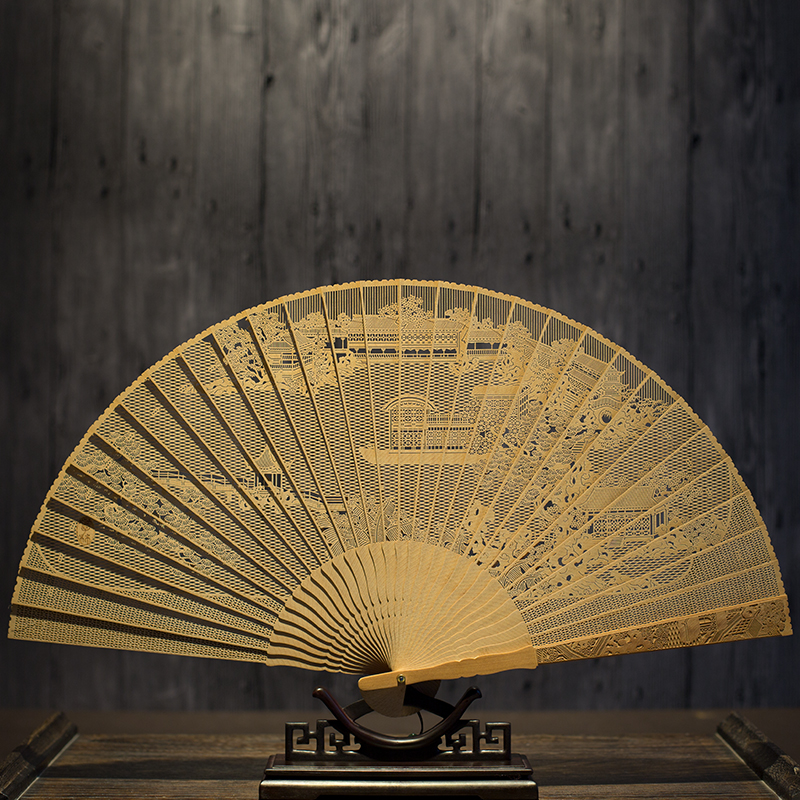Old Gate Suzhou Classical Honolulu Classical Sandalwood Fans Play China Wind Gifts Fan Sandalwood Fan Hollowed-out Folding Fan Retro Craft Gift Hem
