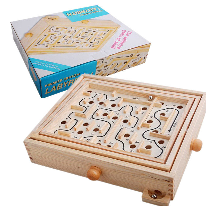 Large Number Wooden Ball Bearing Labyrinth Intelligence Game Adult Children Balance Training Hand-eye Coordination Puzzle Toy Gift