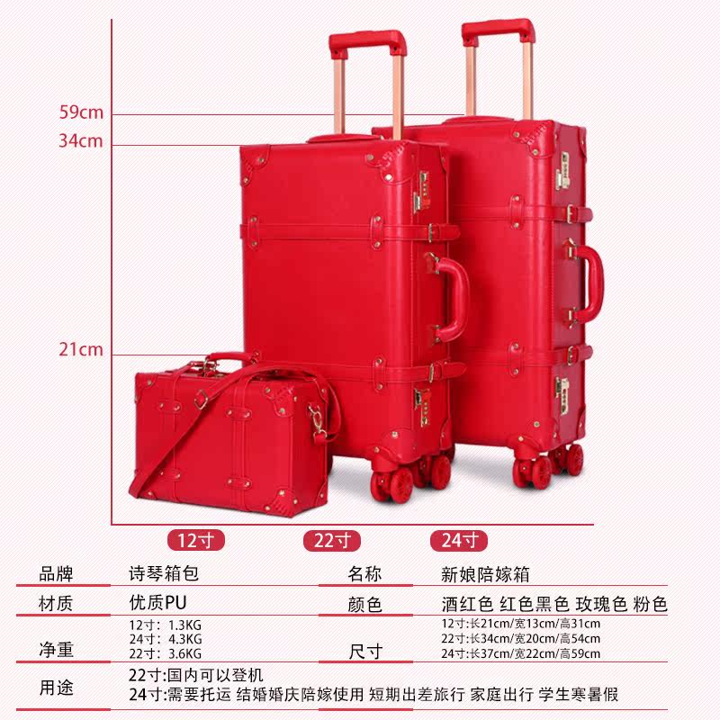 Wedding suitcase dowry suitcase big red luggage case bride female male leather box wedding password luggage