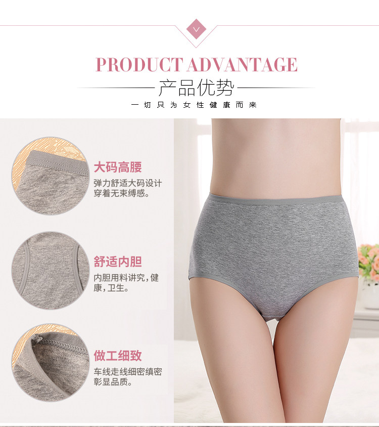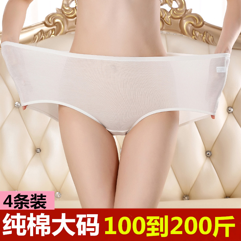 4 strips of high waist underpants female pure cotton pure white no-scratched triangle pants head full cotton fat mm large size underpants female 200 catty