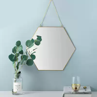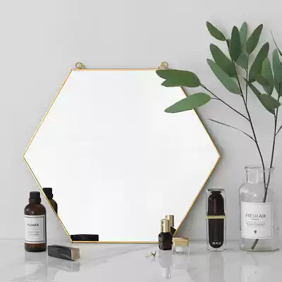 State life ins Nordic brass small hanging mirror punch-free bathroom mirror wall-mounted powder room entrance mirror makeup mirror
