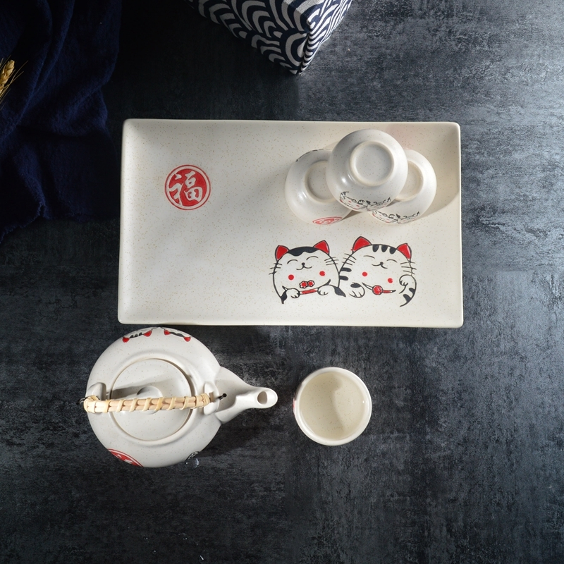Xinyaju Japanese cat creative Japanese ceramic tea set Household dining room single teapot teacup tray
